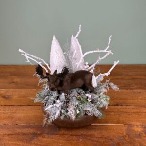 Kerámia kaspóban, téli jellegű asztalidísz