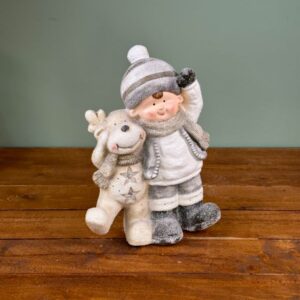 Kerámia dísz, téli öltözetben kisfiú